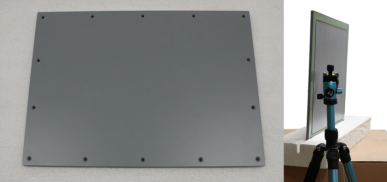 The use of STRATOSubstrate LEO panel blanks significantly reduced raw material and blank lead time. STRATOSubstrate LEO class panels use HR40/NB321 unidirectional prepreg, NB301 film adhesive, perforated aluminum honeycomb core, and 0.002” HN Kapton. The inserts for the deliverable were BR-127 primed aluminum bonded with EA9394. The final assembly measures approximately one meter in diameter and 25 centimeters in thickness.